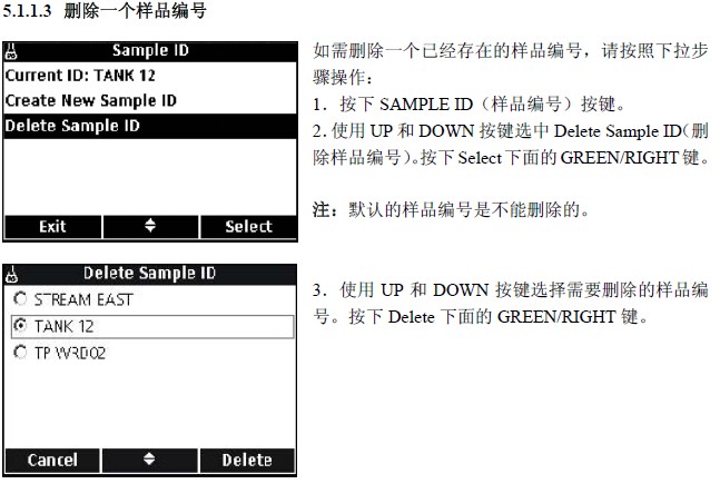 5.2.4 刪除數(shù)據(jù) 30 5.3 傳輸數(shù)據(jù) 31 5.3.1 傳輸數(shù)據(jù)選項 31 5.3.1.1 選擇打印報告的類型 31 5.3.1.2 在數(shù)據(jù)文件中包含欄目頭 32 5.3.2 將數(shù)據(jù)發(fā)送到打印機 33 5.3.3 將數(shù)據(jù)發(fā)送到閃存裝置 33 5.3.4 使用 HQd PC 應(yīng)用軟件將數(shù)據(jù)發(fā)送到計算機 34 5.3.5 發(fā)送電極校準(zhǔn)數(shù)據(jù) 35 5.4 查看打印出來的數(shù)據(jù)日志報告 36 5.4.1 報告的名稱 36 5.4.2 樣品的結(jié)果 36 5.4.2.1 基本報告 36 5.4.2.2 復(fù)雜報告 37 5.4.2.3 總報告 37 5.4.3 校準(zhǔn)結(jié)果 38 5.4.4 檢查標(biāo)準(zhǔn)的結(jié)果 39 5.5 查看打印出來的校準(zhǔn)報告 40 5.5.1 當(dāng)前的校準(zhǔn)報告 40 5.5.2 校準(zhǔn)歷史報告 41 5.6 查看下載的數(shù)據(jù)文件 42 5.7 存檔并交換用戶的方法 45 第六章 pH 值的操作和方法 47 6.1 校準(zhǔn) pH 電極 47 6.1.1 校準(zhǔn)錯誤 48 6.1.1.1 不能識別標(biāo)準(zhǔn) 48 6.1.1.2 斜率錯誤 48 6.2 進行 pH 值測量 49 6.3 運行檢查標(biāo)準(zhǔn) 49 6.3.1 自動檢查標(biāo)準(zhǔn)或定期檢查標(biāo)準(zhǔn) 49 6.3.2 測量檢查標(biāo)準(zhǔn) 50 6.3.3 延遲檢查標(biāo)準(zhǔn) 51 6.4 設(shè)定 pH 方法 51 6.5 修改當(dāng)前的方法菜單 6.5.1 修改 pH 方法 6.5.2 修改 pH 值測量的選項 6.5.3 修改 pH 值校準(zhǔn)的選項 6.5.4 修改 pH 值檢查標(biāo)準(zhǔn)的選項 6.5.4.1 選擇檢查標(biāo)準(zhǔn)的緩沖液 6.5.4.2 使用定制的檢查標(biāo)準(zhǔn) 6.5.4.3 編輯檢查標(biāo)準(zhǔn)提示器選項 6.5.4.4 編輯檢查標(biāo)準(zhǔn)認可的準(zhǔn)則 6.5.5 修改 pH 值測量單位 |