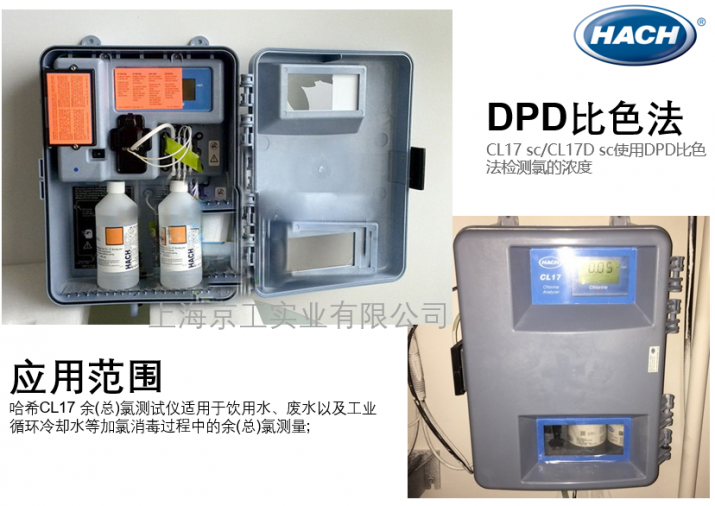 美國HACH哈希余氯檢測儀CL17sc/CL17Dsc 余(總)氯分析儀使用DPD(N,N-二乙基-1,4-苯二胺)比色法檢測氯的濃度。通過測量空白吸光度建立零參考點(diǎn),在測量氯之前補(bǔ)償樣品的色度和濁度。之后,將指示劑溶液和緩沖液加入樣品中, 通過磁力攪拌子使樣品發(fā)生顯色反應(yīng)。隨后,色度計(jì)測量透過樣品的吸光度, 將得到的吸光度與參考標(biāo)準(zhǔn)比較, 得出測量結(jié)果。最后樣品室被新的樣品充滿, 每隔2.5/10分鐘重復(fù)一次。